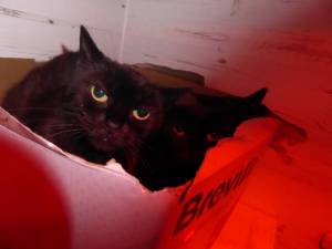 The cats from the home of our recently deceased friend Billy Meade, have now arrived. Before we could take them, we had to wait until the refurbishment of our feral cat enclosure was  completed. The cats which were originally ferals which Bill had trapped, are very scared, so although they were used to him, they have been understandably traumatised by their change of circumstances and environment. Pictured are two of them who were very indignant at my intrusion of their space and wasted no time showing their displeasure! Out of the 9  cats we admitted , three were found a wonderful home on a local smallholding and there are still  6 more of his cats waiting for space here.Those 6 are being  fostered by  a good friend of his but will eventually come here when we have found suitable homes for a few of those already in situ. If anybody reading this blog has a smallholding or stable yard and could do with a few feral cats around the place, please let me know.