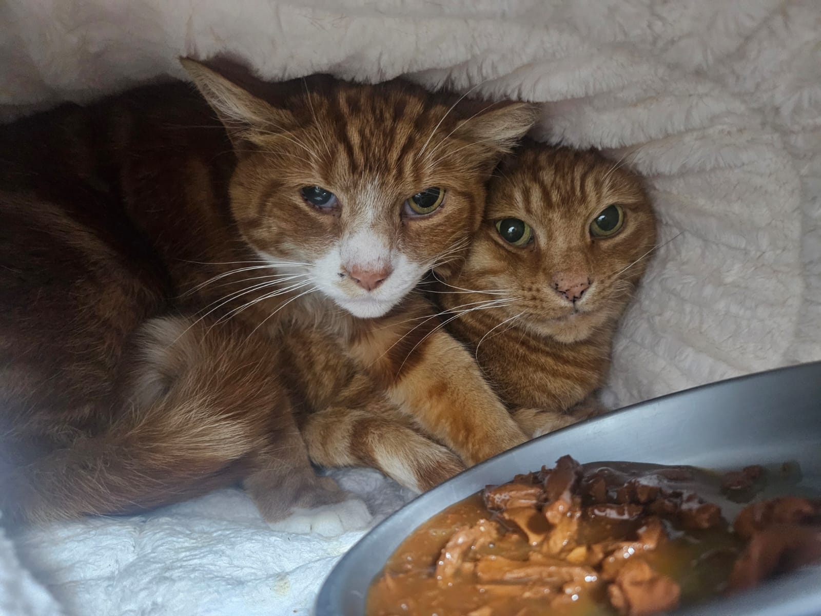 Leo and Ginger have been used to their outdoor lifestyle, being able to interact with people when they want and to come and go as they please. They had relationships with their regular feeders but have not been happy in rescue with us and haven’t wanted any interaction from the team.
