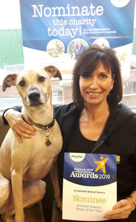Please help our super Freshfields team to win this award. Their commitment, compassion and devotion brings joy and love to the lives of animals like Pippin, one of our happy adopted Freshfields dogs (and part-time office assistant!) seen here with Volunteer Receptionist Maria.