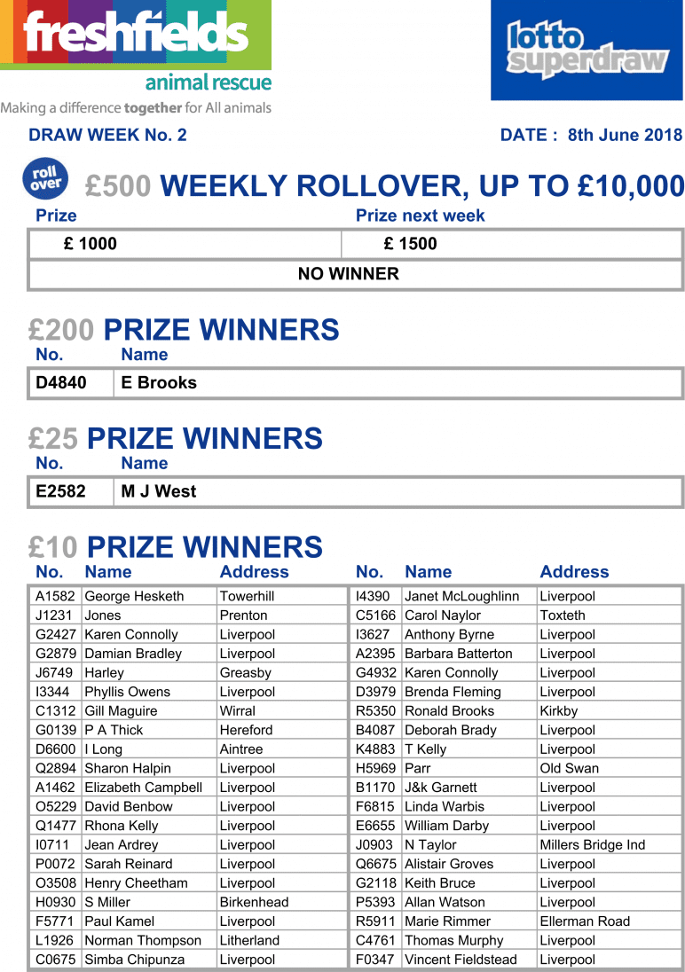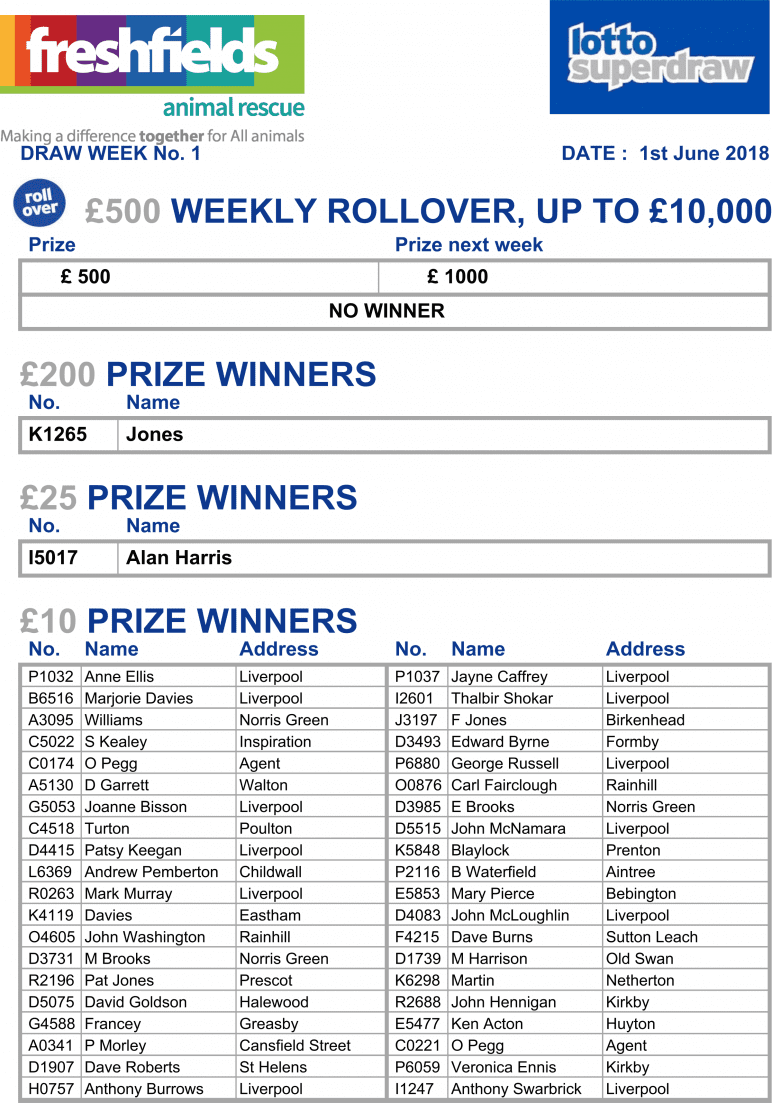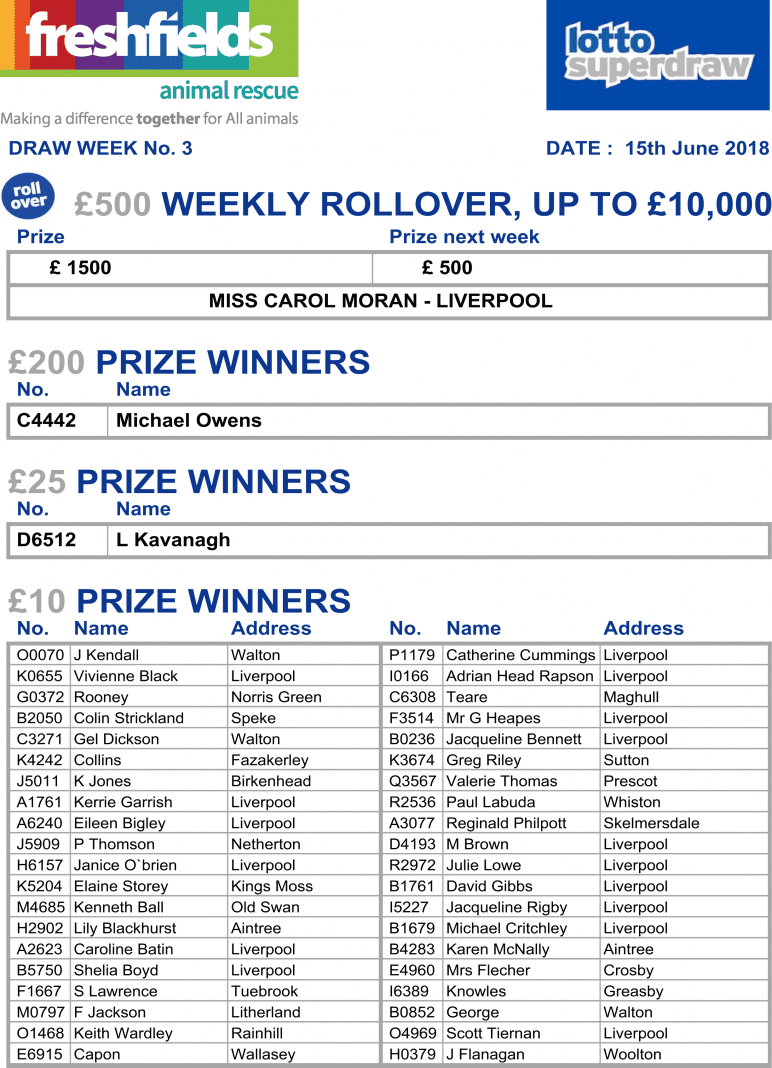 It’s Cooper here; Resident Spokesdog from Freshfields Animal Rescue. My mate Emma tells me it’s Lotto Superdraw time, and has asked me to tell you that here are your winning numbers from the first 3 weeks of the new Lotto year. Good luck everyone, and thanks for your fantastic support which helps rescued animals like me every day. Love and licks, Cooper x .